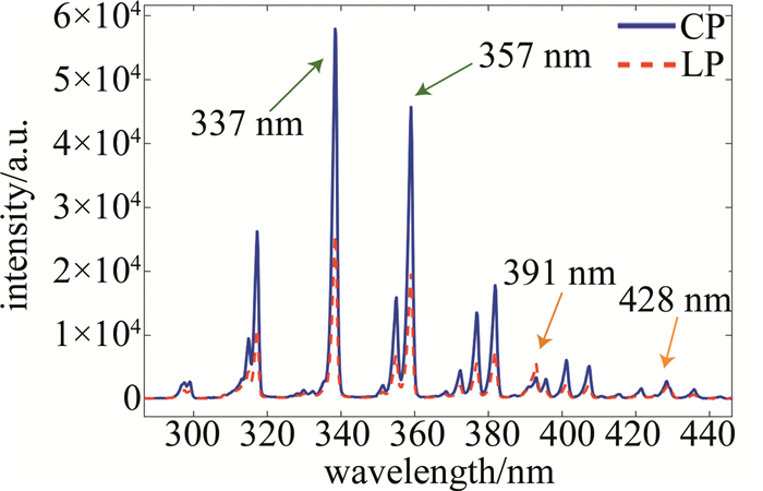 為了探究飛秒激光成絲的內在機制以實現長度表征,采用熒光法和聲學法,得到了不同入射激光脈沖能量下和偏振態下等離子體光絲的熒光光譜和聲音信號信息。