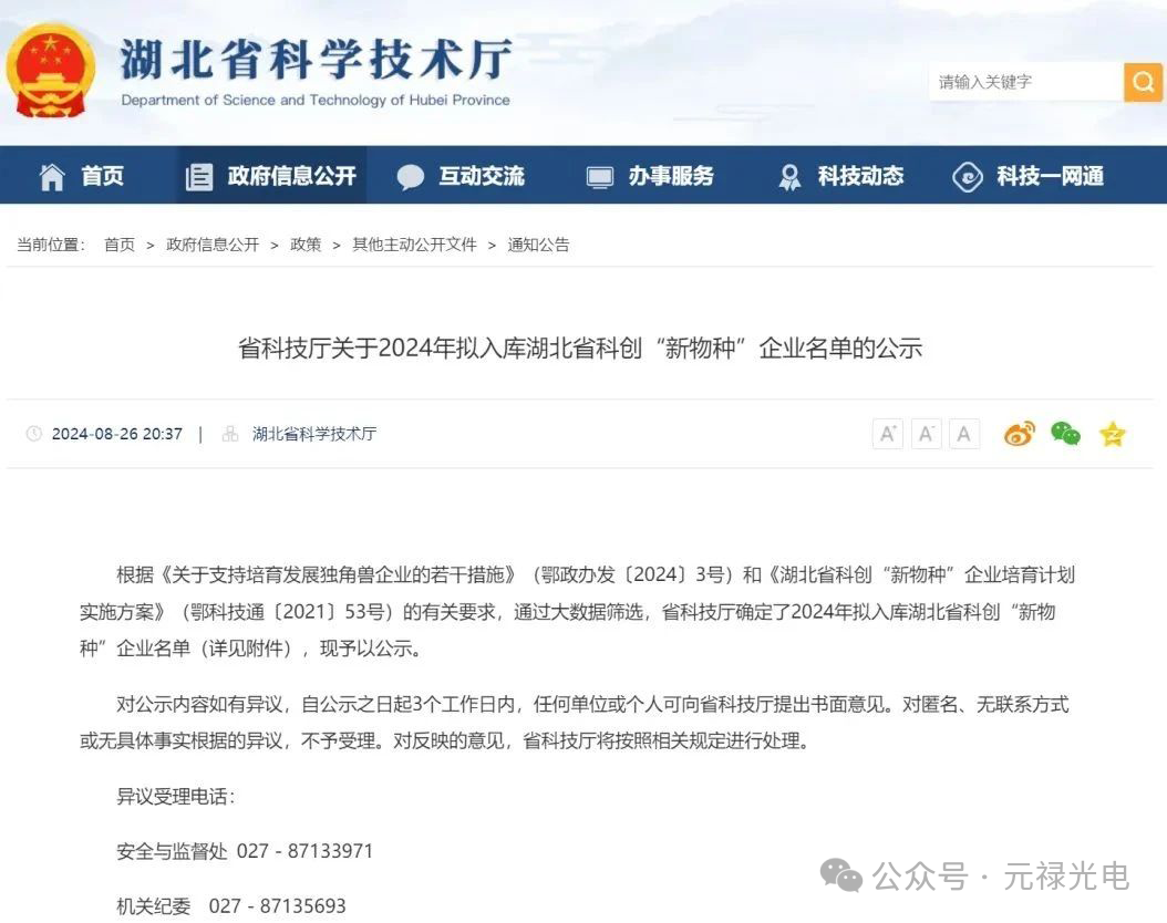 2024年8月14日,武漢東湖新技術(shù)開(kāi)發(fā)區(qū)管理委員會(huì)發(fā)布了《武漢東湖新技術(shù)開(kāi)發(fā)區(qū)管理委員會(huì)關(guān)于印發(fā) 2024年度“光谷瞪羚”企業(yè)名單的通知》,元祿光電憑借高速成長(zhǎng)潛力和自主創(chuàng)新能力,成功入選2024年度“光谷瞪羚”企業(yè)榮譽(yù)稱(chēng)號(hào)!