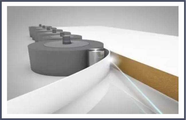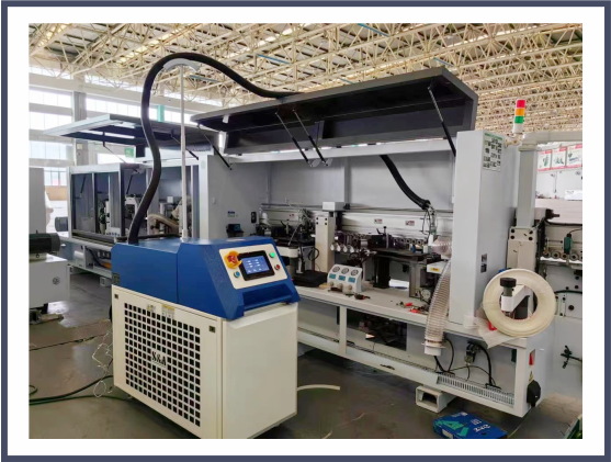 激光封邊: 通過將高能量的激光束聚合到激光封邊帶上, 高能量的激光快速融化封邊帶 的功能層, 然后通過壓輪機(jī)構(gòu), 將邊帶壓緊在工件上, 再經(jīng)過截斷、初修、精修、跟蹤倒圓 等工序,從而實現(xiàn)封邊的目的。